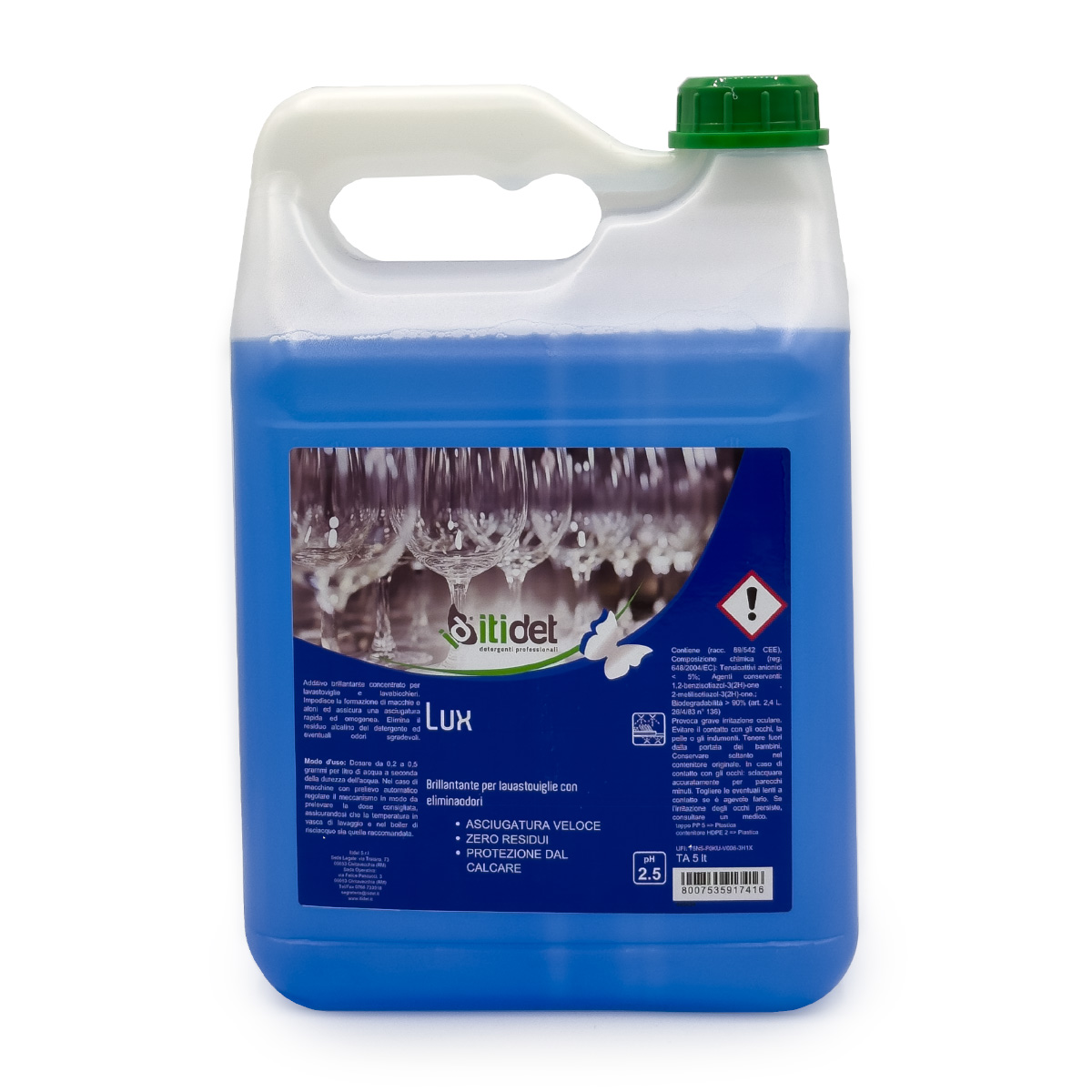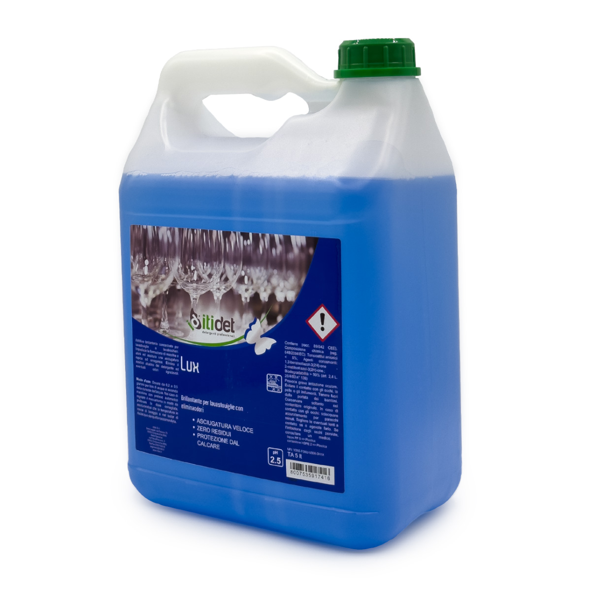 Lux è classificato da Itidet come “Brillantante per lavastoviglie con eliminaodori”. Neutralizza i residui alcalini del detersivo che causano i cattivi odori tra un ciclo e l’altro, lasciando la macchina fresca.