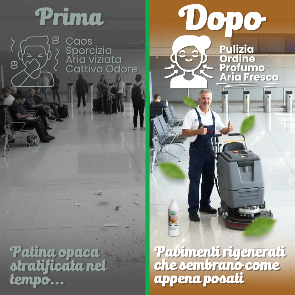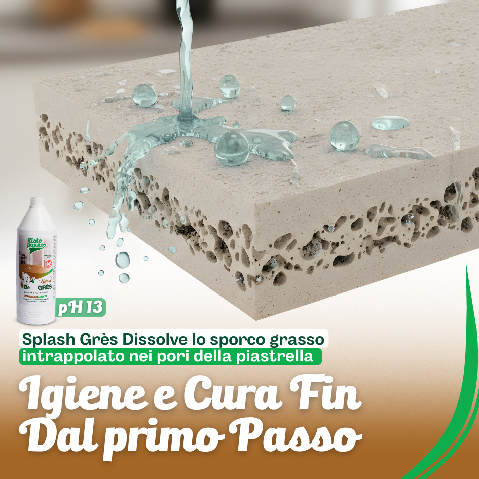 Il gres porcellanato ha un nemico invisibile: la microporosità. Lo sporco si annida dove i normali detergenti non arrivano, spegnendo il colore originale. Splash Gres è la soluzione alcalina professionale progettata per “estrarre” lo sporco dai pori e riportare il pavimento al suo aspetto originale.